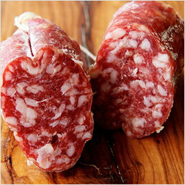 味と柔らかさを与えます。荒挽きで濃厚な赤身の旨み・とろけるような脂身が魅力の贅沢な高級サラミです。